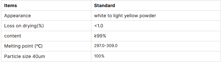 పదార్ధం తెల్లటి స్ఫటికాకార ఘనమైనది, నీటిలో కరుగుతుంది మరియు కొన్ని సేంద్రీయ ద్రావకాలు ఇది సాపేక్షంగా అధిక ఉష్ణ మరియు రసాయన స్థిరత్వాన్ని కలిగి ఉంటుంది.